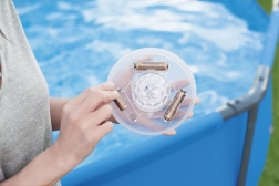 Denne moderne LED lampe er nem at bruge: indsæt blot tre AA-batterier (medfølger ikke), placer lampen på vandoverfladen og tryk på knappen på toppen. Du behøver ingen ledninger eller el-tilslutning. Designet til blidt at oplyse en vandflade med en bredde på 2,43 m og en dybde på 1,52 m. Slukker automatisk efter en time uden aktivitet.