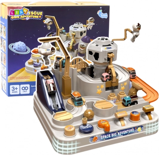 Sættet indeholder 3 farvede køretøjer og en astronautfigur, der giver børn mulighed for at skabe deres egne historier og missioner. Produktet leveres i en flot farverig æske, hvilket gør det til en ideel gave til enhver anledning.
