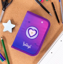Til det komplette skoleudstyr hører også et enkeltlags penalhus med to flapper og mærkevare YKK-lynlås. Det tilbyder en rummelig indretning med lille lomme til småting og vindue til skema. Elastikkerne indeni er ideelle også til trekantede farveblyanter og tuscher.