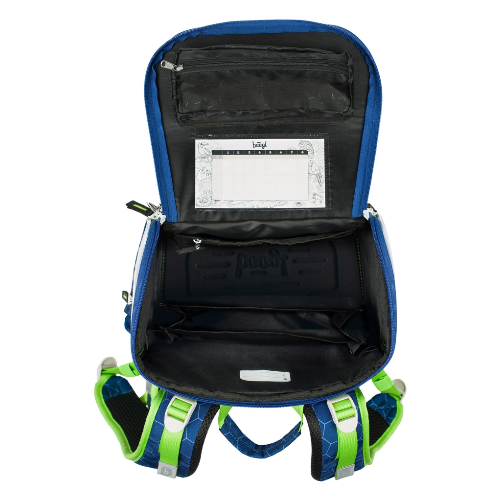 Taskens design er både indbydende og funktionelt. Den indvendige organizer og den specielle termolomme til madpakke hjælper med at holde orden, mens udskiftelige badges giver børn mulighed for at ændre taskens udseende efter deres ønsker.