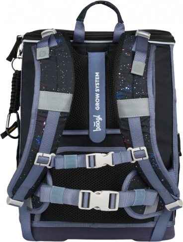 Let skoletaske med forstærket krop, ideel til børn fra 1. klasse. Voksende, justerbart rygsystem, fuldt indstilleligt i tre størrelser, giver komfort og bekvemmelighed for skolebørn.