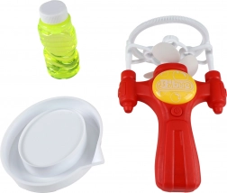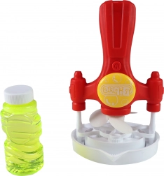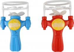 Hæld boblevæsken i den medfølgende skål, dyp hovedet med ringene, og tryk på tænd/sluk-knappen. Den indbyggede ventilator sætter straks ringene i gang og sender en strøm af fine bobler ud, som er perfekte til haven, parken eller børnefesten.