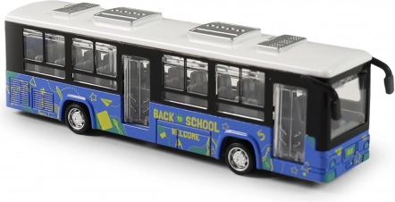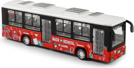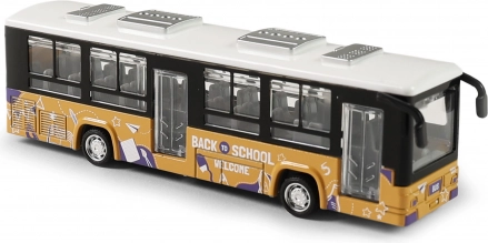 Metalbus med åbne døre og fri kørsel, længde 12 cm. Det ideelle legetøj til små chauffører.