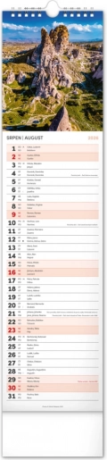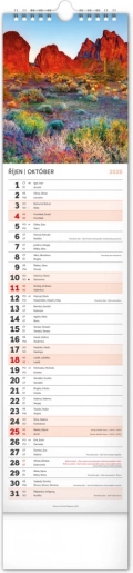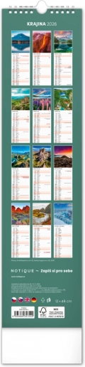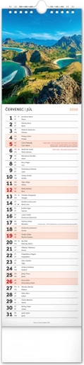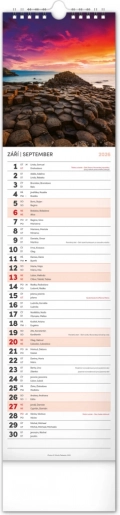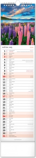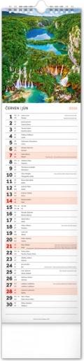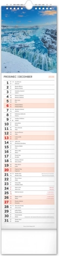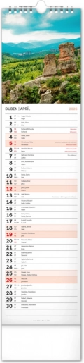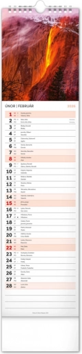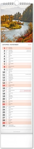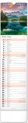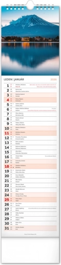 Nyd skønheden i det maleriske landskab med denne praktiske smalle vægkalender. Indeholder tjekkiske og slovakiske navne, helligdage, mærkedage og månefaser, med plads til dine noter.