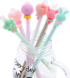 Pennen kombinerer funktionalitet og sjovt design, perfekt til både skole og hjemmebrug. I pakken er der 48 stk., hver sælges enkeltvis, mønstre vælges tilfældigt.