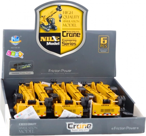 Bæltekranen med udskydelig bom er et detaljeret legetøj, der efterligner virkelige byggemaskiner. Den er udstyret med en bevægelig bom med funktion til at hæve og sænke krogen, hvilket gør det muligt at simulere realistisk drift på byggepladsen.