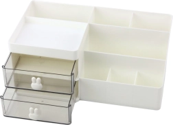 Funktionel skrivebordsorganizer er den ideelle løsning for dem, der værdsætter orden og æstetik på arbejdspladsen eller i studiet. Takket være det gennemtænkte design med mange rum og to udtrækkelige skuffer gør den det nemt at organisere alle nødvendige kontorartikler.