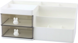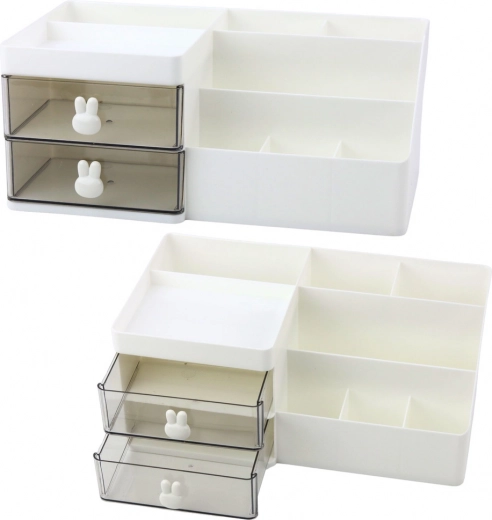 Hele organiseren er fremstillet af slidstærk plast, som tåler daglig brug. Minimalistisk design og neutrale farver passer perfekt ind i ethvert miljø – hvad enten det er på kontoret, i børneværelset eller i hjemmekontoret. Skuffegreb formet som kaniner giver organiseren charme og en unik stil.
