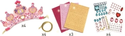 Forvandl kreativt arbejde til en magisk leg. Sættet fra DJECO indeholder alt, hvad der skal til for, at børn kan designe og dekorere fire unikke kroner. Med selvklæbende sten, glimmer og dekorationer opstår der originale kreationer, som nemt bindes fast med det gyldne bånd og sidder behageligt i håret.