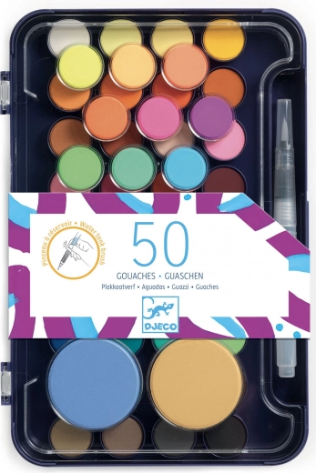 Oplev glæden ved at male med dette akvarelsæt i to etager fra Djeco. Sættet tilbyder: