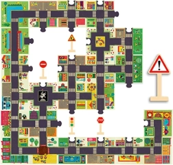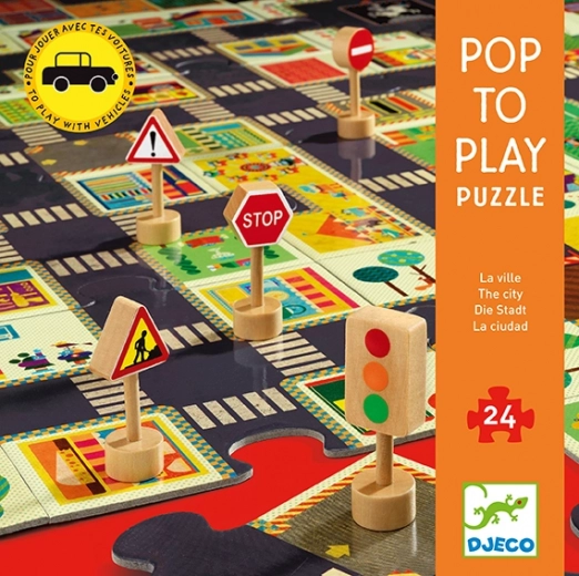 Det interaktive gulvpuslespil fra Djeco er designet til b8rn fra 3 e5r og beste5r af 24 store brikker, der gf8r det muligt at skabe sit eget vejsystem. Der medff8lger 5 tre6 trafiktegn, som giver legen en realistisk pre6g.