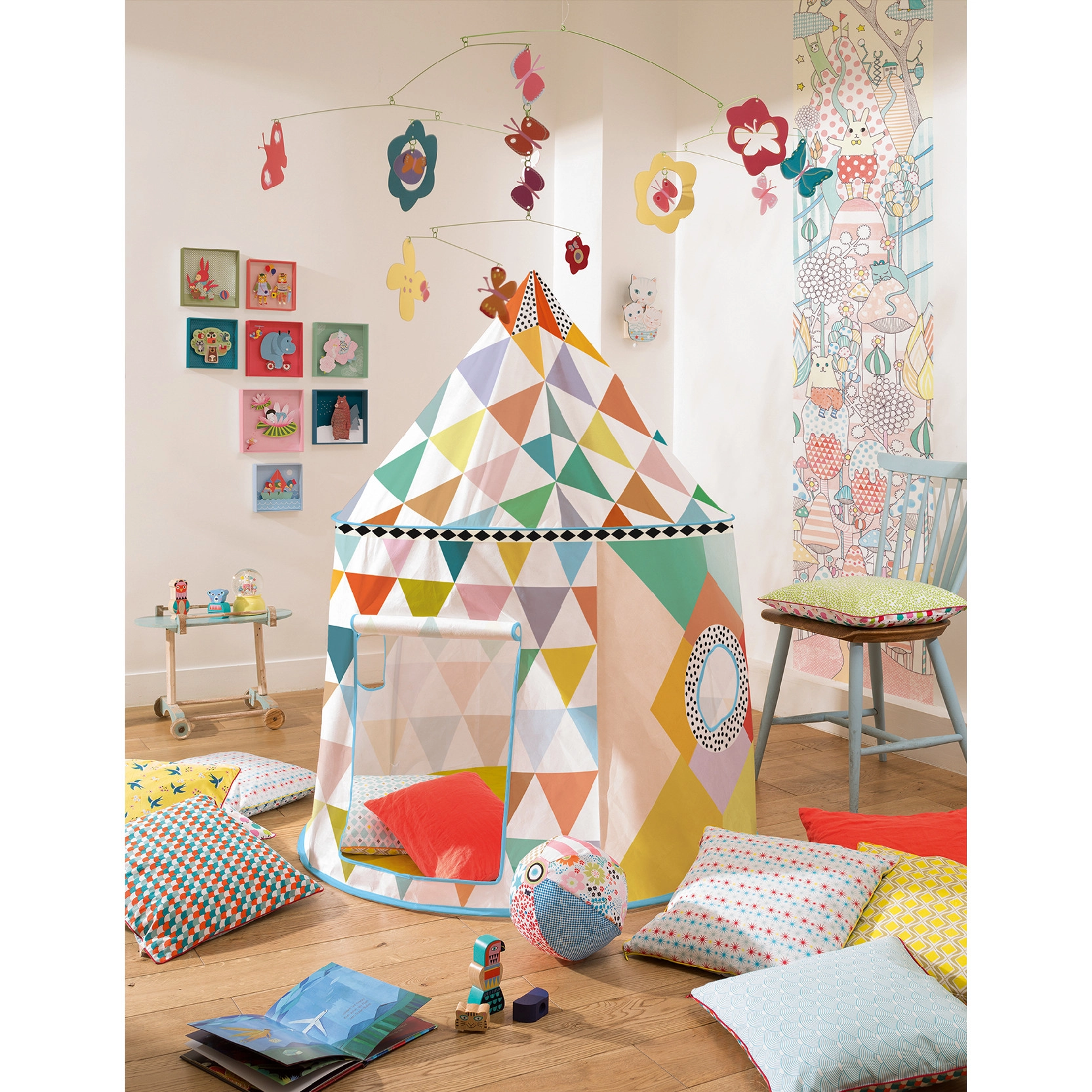 Farverig Djeco-telt er et ideelt skjulested for eventyrlystne børn. Dette telt giver masser af sjov og understøtter kreativ leg for dine små.