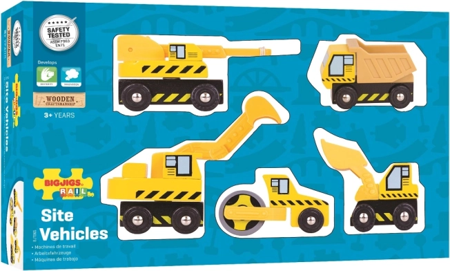Sættet med byggemaskiner fra BIGJIGS RAIL bringer liv til enhver jernbaneverden. Delene med magneter forbindes nemt med andre tog og tilbehør. Ideelt til tema-leg på byggepladsen og udvikling af finmotorik.