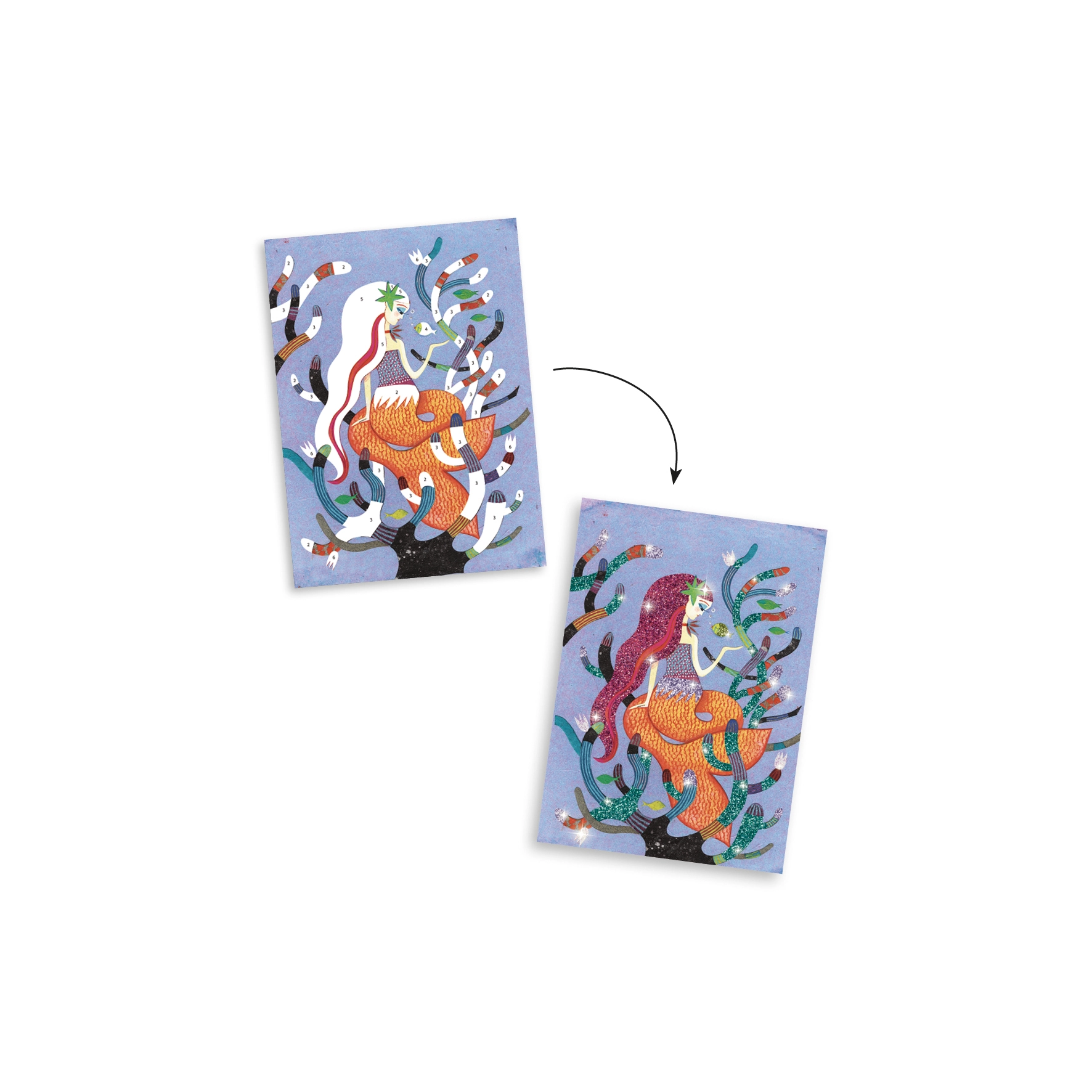 Træd ind i eventyrverdenen med sættet Glitrende Havfruer fra Djeco. Sættet er designet til at udvikle børns kreativitet: