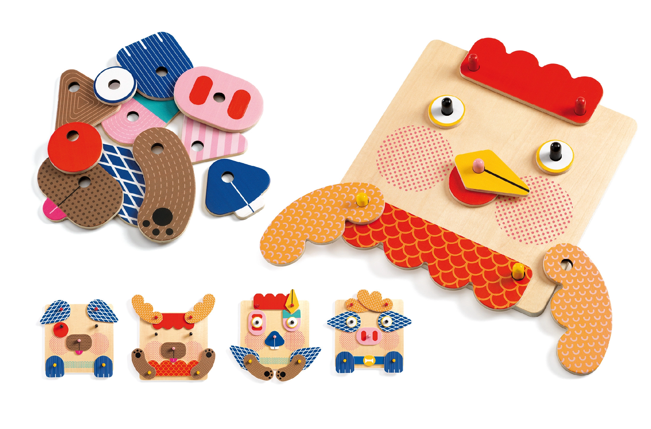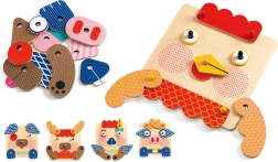 Oplev Djecos kreative univers med dette fantastiske træ-sæt til at lave dyreansigter. Børn kan sammensætte et uendeligt antal sjove dyreansigter af de forskellige dele.