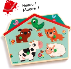 Indsættelses-puslespil med husdyr fra DJECO er en sjov måde at introducere børn til husdyrenes verden. Med klare farver og yndige illustrationer vil dine børn have svært ved at slippe dette interaktive, lærerige legetøj.