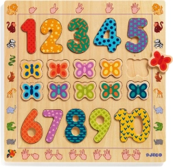 Indsætningspuslespillet Tælle med sommerfugle fra DjECO kombinerer leg og læring. Det hjælper børn med at udvikle finmotorik, genkendelse af former og grundlæggende talforståelse.