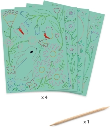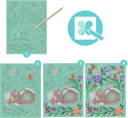 Med skrabebilleder DJECO Møde kan børn opdage kreativ kunstverdenen og udtrykke deres visioner kreativt ved hjælp af skrabeteknik.