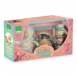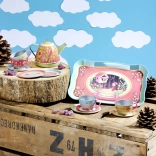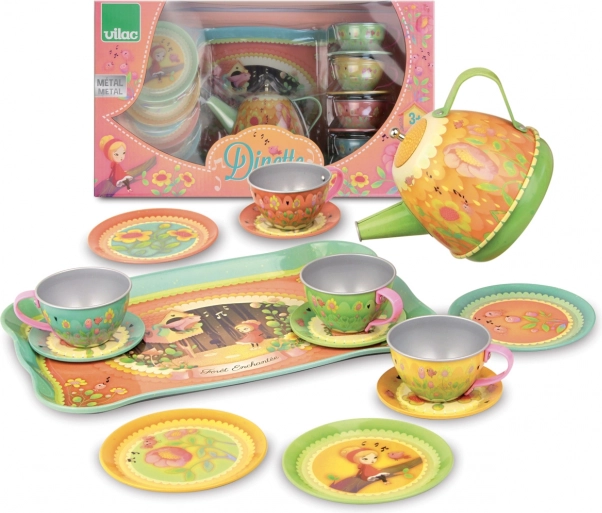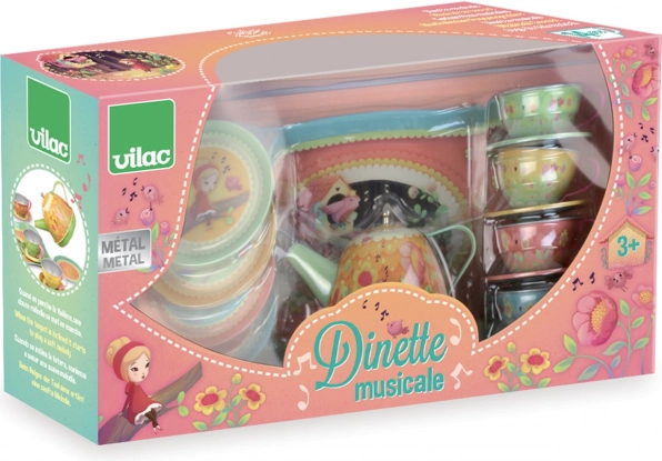 At holde teselskab har aldrig været så magisk som med Vilac Musical tesæt. Dette metalsæt imponerer med sine eventyrlige illustrationer fra temaet "magisk skov" og det unikke musikalske element. Når kanden vippes, spiller en sød melodi, som giver hele legen et strejf af magi.