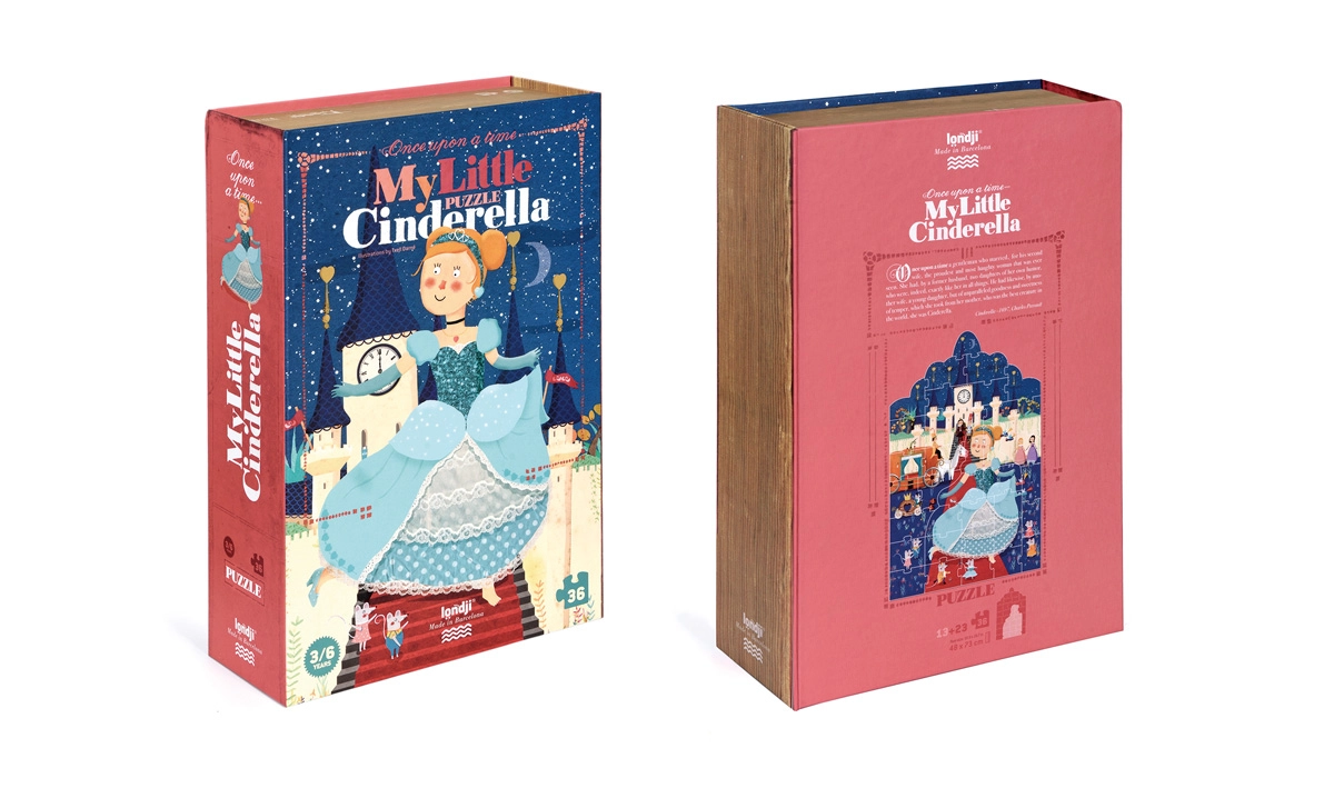 Nyd sjov med det smukke puslespil fra Londji, som gengiver den fortryllende historie om Askepot på 36 brikker.