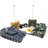 Nyd en actionfyldt tankkamp med et sæt af to RC-tanke i skala 1:28. Hver tank har en roterende tårnkrans på 330°, realistiske lydeffekter, lyseffekter, registrering af “liv” og klarer stigninger på 45°. Fjernbetjeningerne kører på separate frekvenser 27/40 MHz for problemfri duel. I pakken er der genopladelige batterier til tankene samt batterier til fjernbetjeningerne, så du kan spille med det samme efter udpakning.