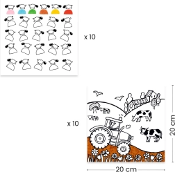Indeholder en række maleark med gårdmotiver, der stimulerer kreativ tænkning.
