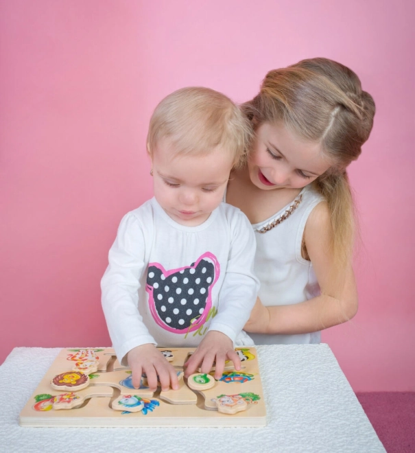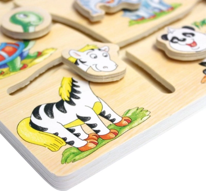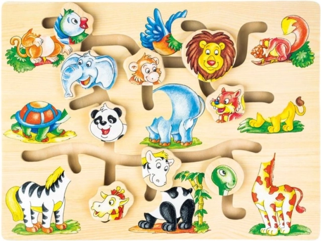 Den træbaserede labyrint med dyr er et ideelt redskab til at udvikle børns færdigheder allerede fra tidlig alder. Takket være de farverige motiver og bevægelige dele forstår børnene nemt, hvordan man matcher det rigtige hoved med dyrets krop, samtidig med at hånd-øje-koordinationen trænes.