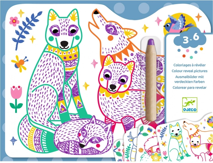 Tag på en magisk rejse i en farverig verden med dette unikke sæt fra Djeco. Hver side indeholder smukke illustrationer af skovdyr, som venter på at blive vækket til live med farver ved hjælp af vand.
