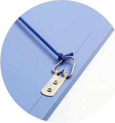 Holdbart metalophæng og en stærk snor gør det nemt og pålideligt at placere tavlen på væggen i børneværelset.