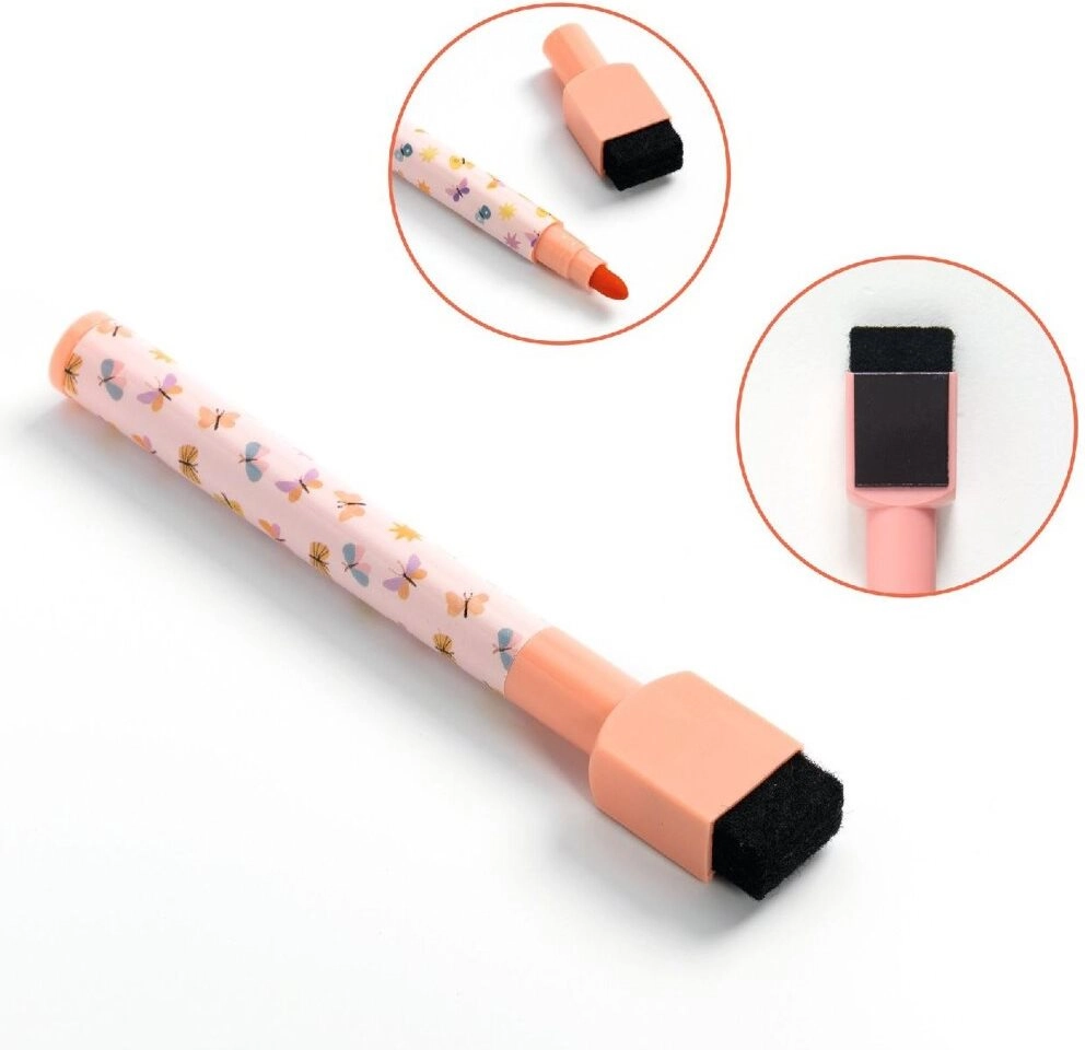 Der medfølger en tør-slet tusch med magnetisk hætte, som du altid kan sætte fast direkte på tavlen. Metaloverfladen egner sig til magneter og til tuscher af typen dry-erase. Et glimrende valg til børn fra 5 år til at udvikle kreativitet og finmotorik.