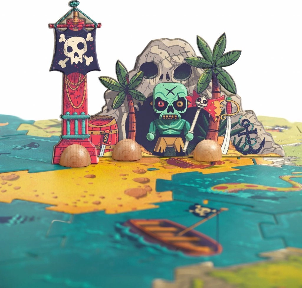 Dette originale sæt kombinerer glæden ved puslespil med kreativ leg. 26 store sekskantede brikker gør det muligt at samle en rummelig scene, mens 4 vertikale kulisser på træfødder giver hele slaget en tredimensionel effekt. Brikkerne er lavet af meget kraftig karton med FSC®-certificering, så de tåler hyppig leg.
