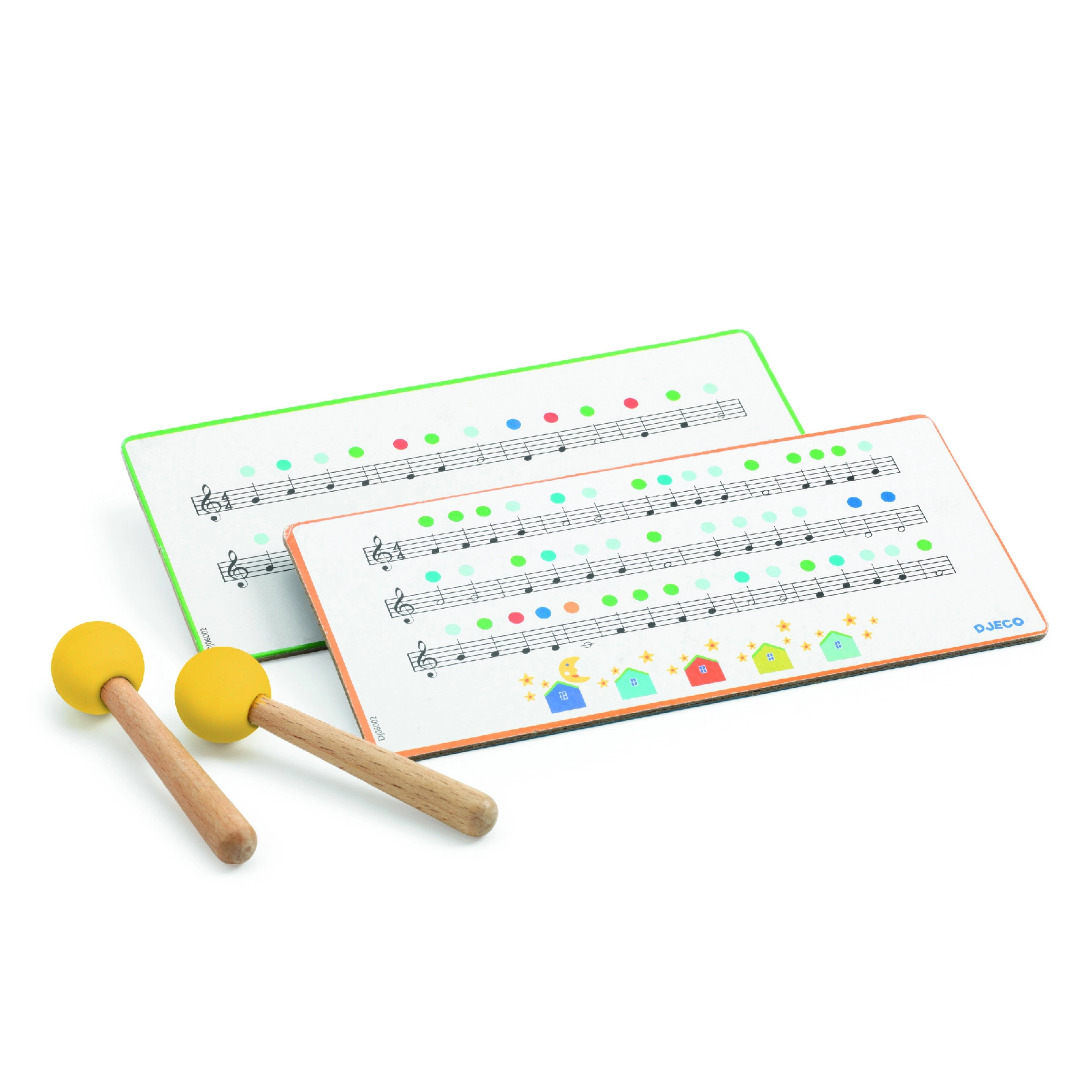 Nummererede tunger og medfølgende køller gør det muligt for børn straks at spille behagelige melodier uden forhåndserfaring.