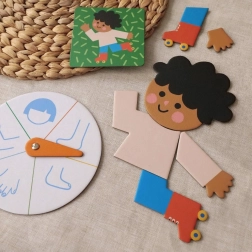 Bodyco er et smart og smukt illustreret spil, hvor børn lærer, hvor hoved, arm eller ben er – og især hvordan de passer rigtigt sammen. Spillerne spinner rouletten, vælger den rigtige brik og samler trin for trin deres figur. Spillet understøtter naturlig læring gennem bevægelse, gentagelse og glæden ved at opdage.