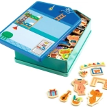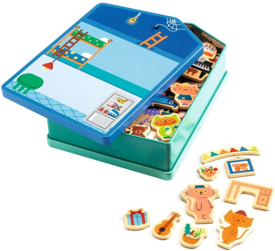 Dette stilfulde magnetiske sæt fra DJECO forvandler hvert øjeblik til leg. Metalkassen formet som et hus fungerer som en bærbar magnettavle med tryk på begge sider, så børn nemt kan skabe og variere scener i forskellige rum. Træmagneterne er farverige, behagelige at holde på og holdbare til daglig leg.