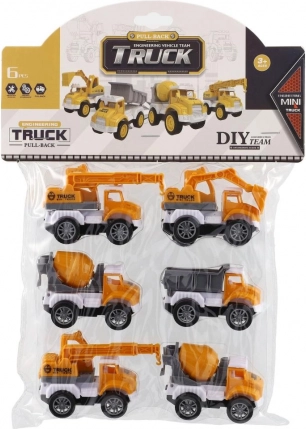 Et fantastisk sæt med 6 mini byggbiler vil glæde enhver lille bygmester. Bilerne har træk-op bagud-mekanisme, som giver sjov og actionfyldt leg.