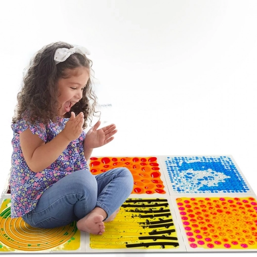 Teksturerede flydende måtter Tullo bringer sjov og stimulans til børn. De indeholder en sikker blanding af vand og olie i levende farver og er også velegnet til pædagogiske formål.