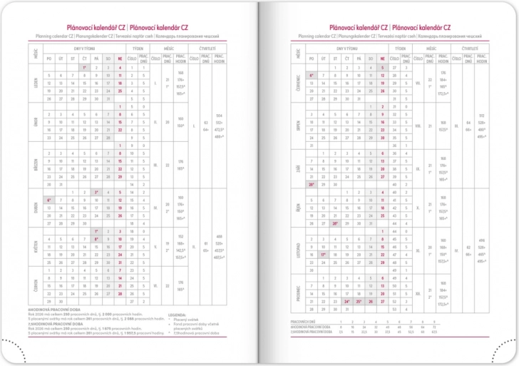 - Flersproget kalendarium med tjekkiske og slovakiske betegnelser samt supplerende oplysninger på engelsk, tysk, ungarsk og russisk.
