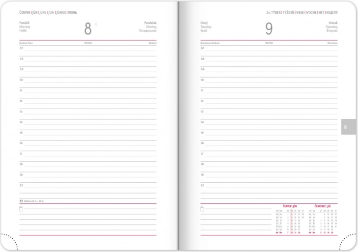 Elegant daglig kalender Notique Ajax 2026 i en dyb grøn farve er ideel til planlægning af hele året med tjekkisk-slovakisk kalendarium og ekstra sproglag. Perfekt praktisk design med penneholder og elastisk lukning.