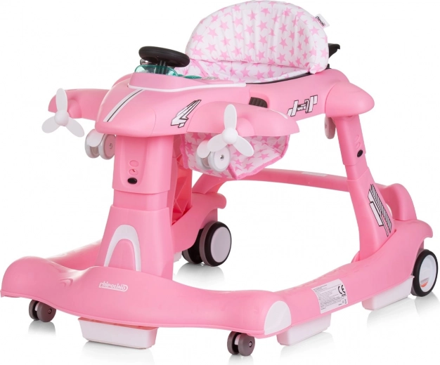 Gåvogn Fly 3-i-1 er en ideel hjælper til dit barn under de første skridt. Med den vil dit barn lære at opretholde balance og koordinering. Sjovt legetøjspanel med legesager og musik udvikler kreativitet og sikrer underholdning.