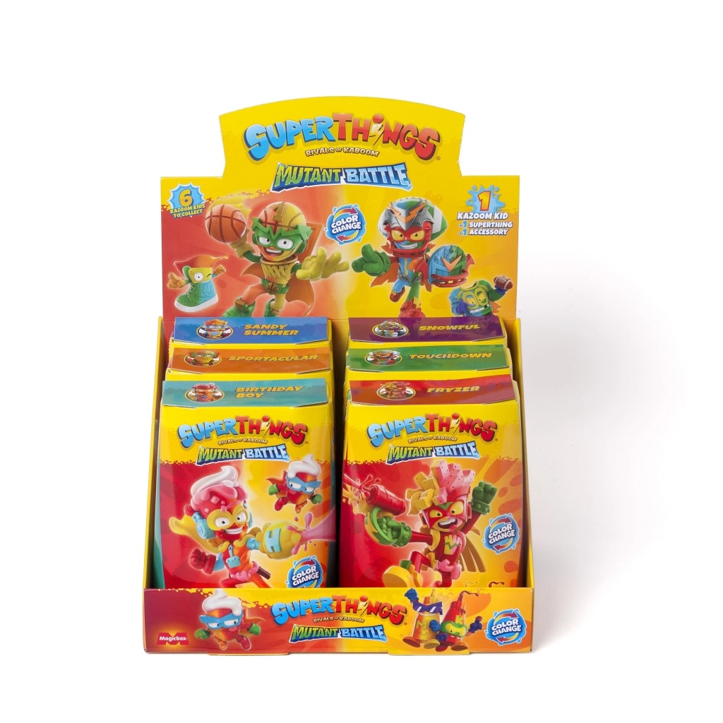 Velkommen til Kaboom City, hvor helte og skurke fra SuperThings Mutant Battle stormer scenen! Hver figur i denne serie har en unik evne til at skifte farve.