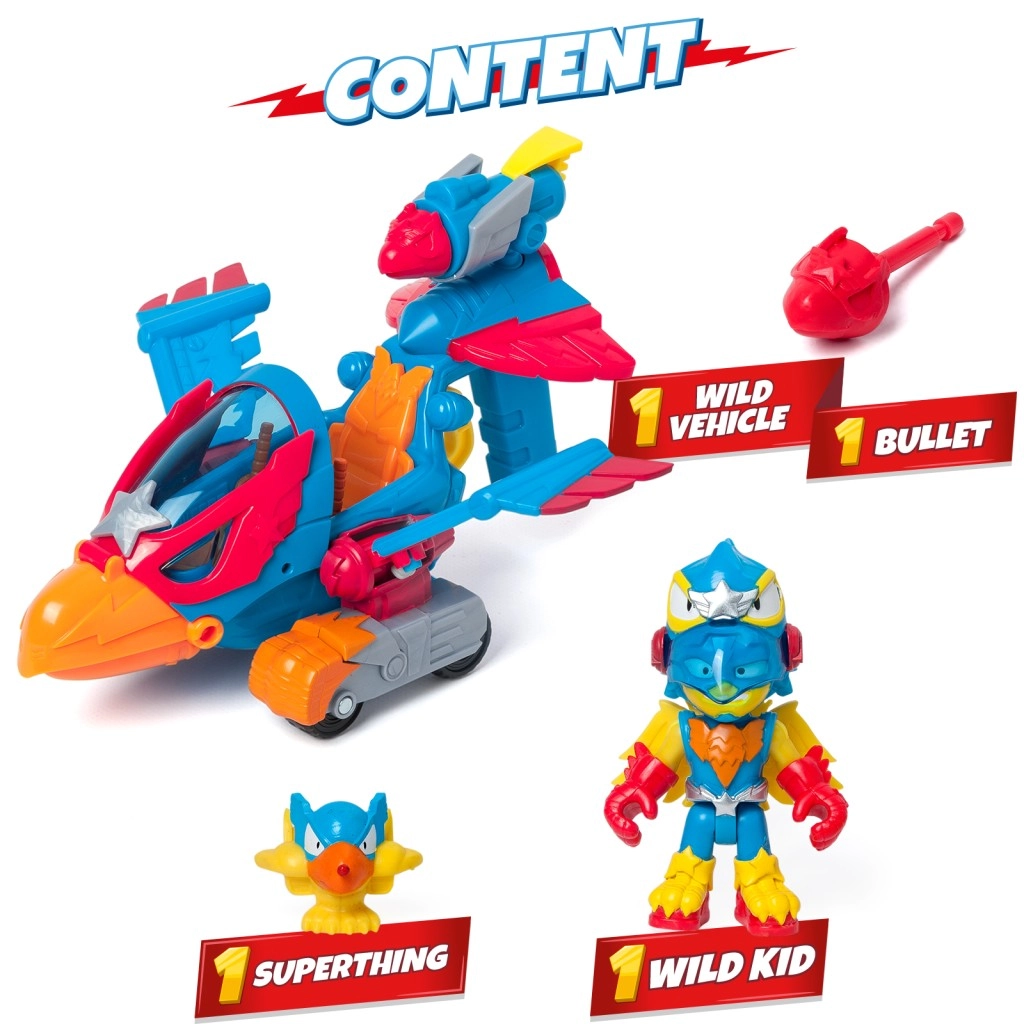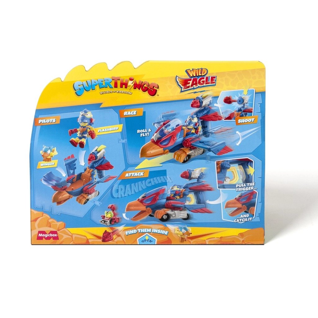 Dyk ned i et eventyrligt univers med en eksklusiv Kid og SuperThing, som kan flyve i cockpittet på Wild Eagle Jet. De bevægelige vinger øger realismen, mens drejning af aftrækkeren lover nedskydning af skurke eller at fange dem i næbbet.