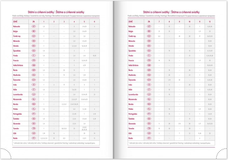 - liste over helligdage i Tjekkiet og Slovakiet samt internationale helligdage