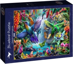 - 500 brikker, der danner et smukt motiv med kolibrier i et tropisk miljø.