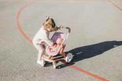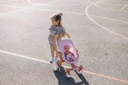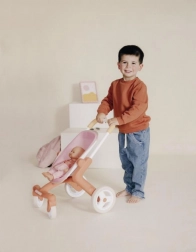 Denne dukkevogn tilbyder nem styring og håndtering takket være forhjulene, der roterer 360 grader. Den lette og holdbare plastikramme sikrer lang levetid og nem håndtering. Vedligeholdelsen er legende let: Fugt en svamp med vand og rengør vognen – ideelt hvis den bliver snavset under leg. Vognen er beregnet til dukker op til 42 cm; dukker medfølger ikke.
