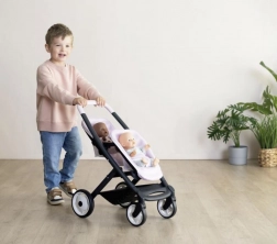 Sportsklapvogn til tvillingedukker fra mærket Smoby i et smukt Quinny-design. Denne moderne klapvogn har aftagelige sæder og støjsvage hjul, hvilket sikrer behagelig brug.