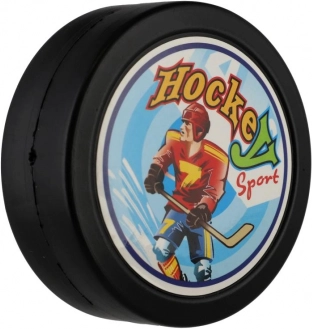 Sættet inkluderer en let plastpuck, som er ideel til børneleg derhjemme eller udendørs.