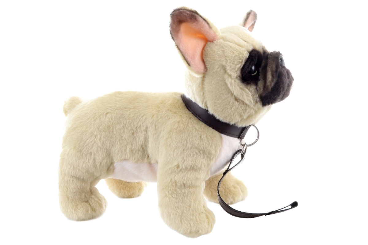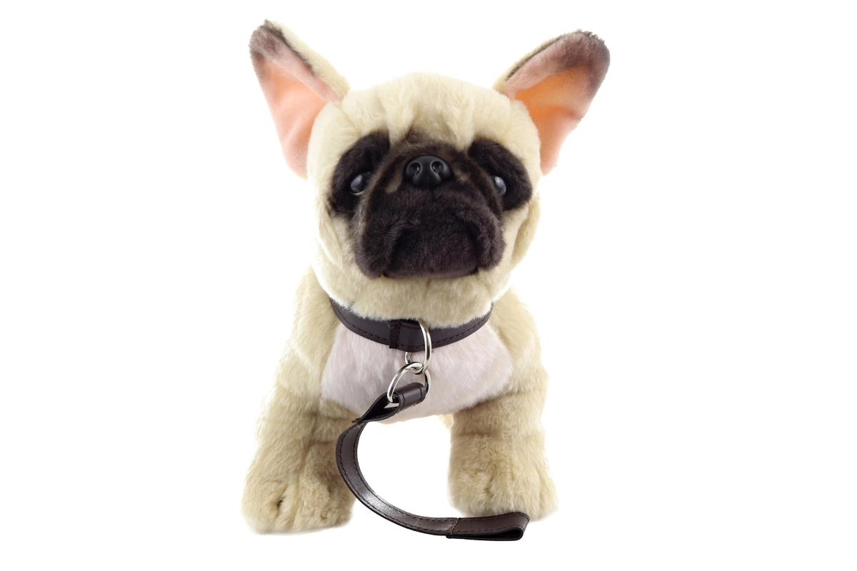 Økologisk venlig plysbamse Fransk Bulldog med realistisk udseende er den ideelle ledsager for børn i alle aldre. Denne søde bamse kommer med en praktisk snor, der støtter leg og interaktion.