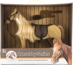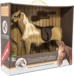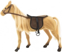 Større plastikhest med blød overflade af fleece og tilbehør til kæmning 38 cm lang med hovedtøj og sadel, ideel til små hesteelskere.