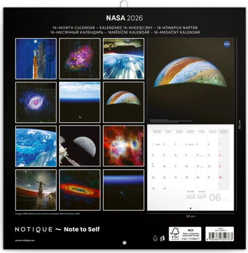 NASA noteskalender 2026 med smukke billeder af rummet. Størrelse 30 x 30 cm.