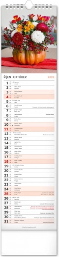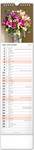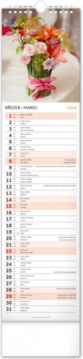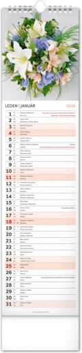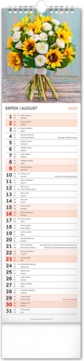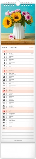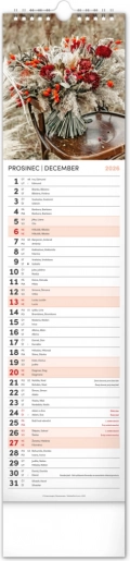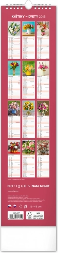 Notique vægkalender Blomster 2026 kombinerer æstetik og funktionalitet. • Fortryllende billeder af blomster vil følge dig hele året. • Det praktiske format 12 x 48 cm passer nemt ind i ethvert rum. • Tosprogede oplysninger på tjekkisk og slovakisk, inklusive navne, helligdage, mindedage og månens faser. • Plads til dine egne noter hver dag, hvilket hjælper dig med effektivt at organisere opgaver og planer.